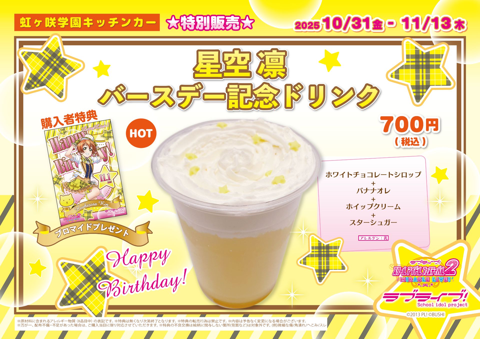 「虹ヶ咲学園キッチンカー」よりバースデー記念ドリンクメニュー販売のお知らせ